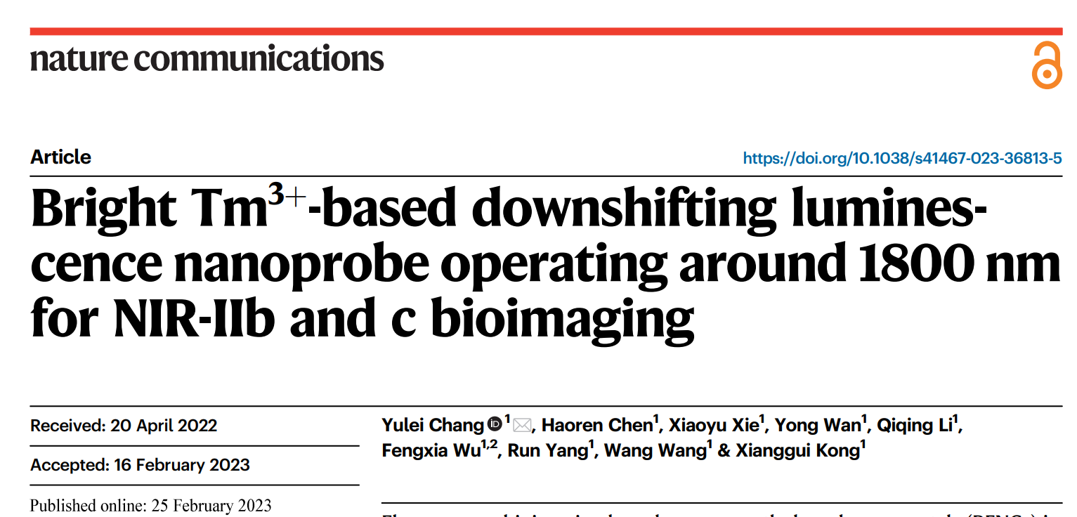 近日,中科院长春光学精密机械与物理研究所发光学及应用国家重点实验室常钰磊课题组在近红外二c区(NIR-IIc,1700-2000 nm)活体荧光成像领域取得进展。研究结果以“Bright Tm3+-based downshifting luminescence nanoprobe operating around 1,800 nm for NIR-IIb and c bioimaging”为题,全文发表在《Nature Communications》[Nat Commun 14, 1079 (2023)]。