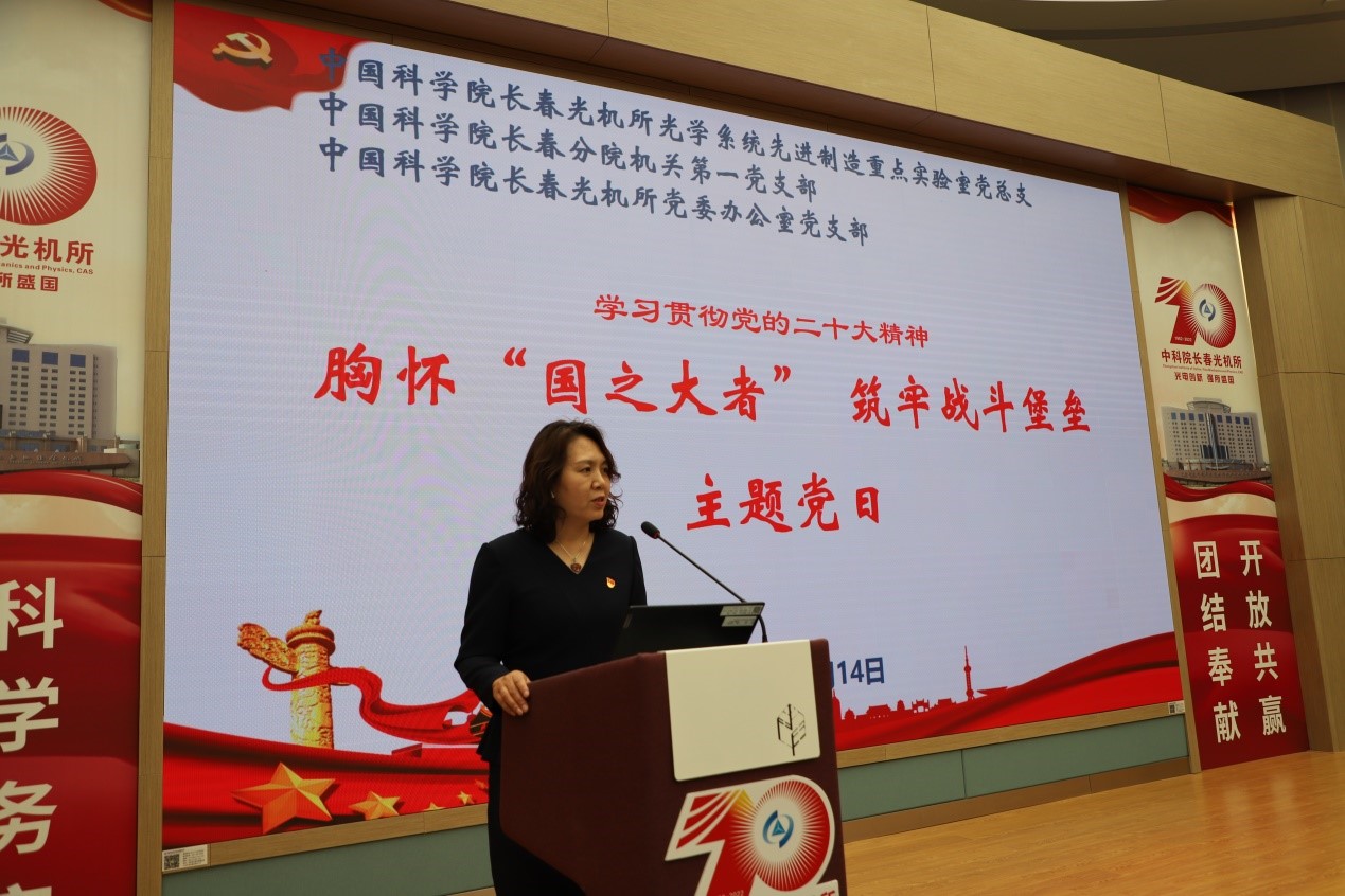 为深入学习领会党的二十大精神,4月14日下午,长春光机所光学系统先进制造党总支、长春分院机关第一党支部、长春光机所党委办公室党支部联合开展主题党日活动,邀请长春分院分党组书记、院长甘建国为大家全面解读党的二十大精神,长春光机所党委书记、副所长金宏参加宣讲报告会,会议由长春光机所党委办公室主任初蓓主持。