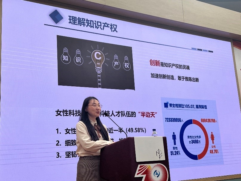 同时今年的世界知识产权日的主题聚焦“女性和知识产权:加速创新创造”。光电对抗研究部郭立红研究员、发光学及应用国家重点实验室孙晓娟研究员、光学系统先进制造重点实验室赵尚男、国家知识产权局专利局在本所挂职锻炼的赵雯典审查员、褚明辉处长作为女性工作者代表,进行了科技奖励、科技创新、专员培养、高质量专利培育、知识产权全面管理等内容的精彩分享。