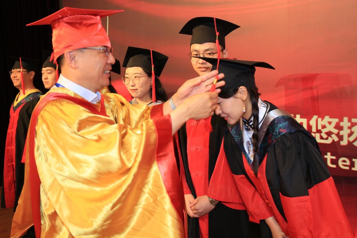 贾平所长和金宏书记为毕业生扶正流苏,开启未来新征程。