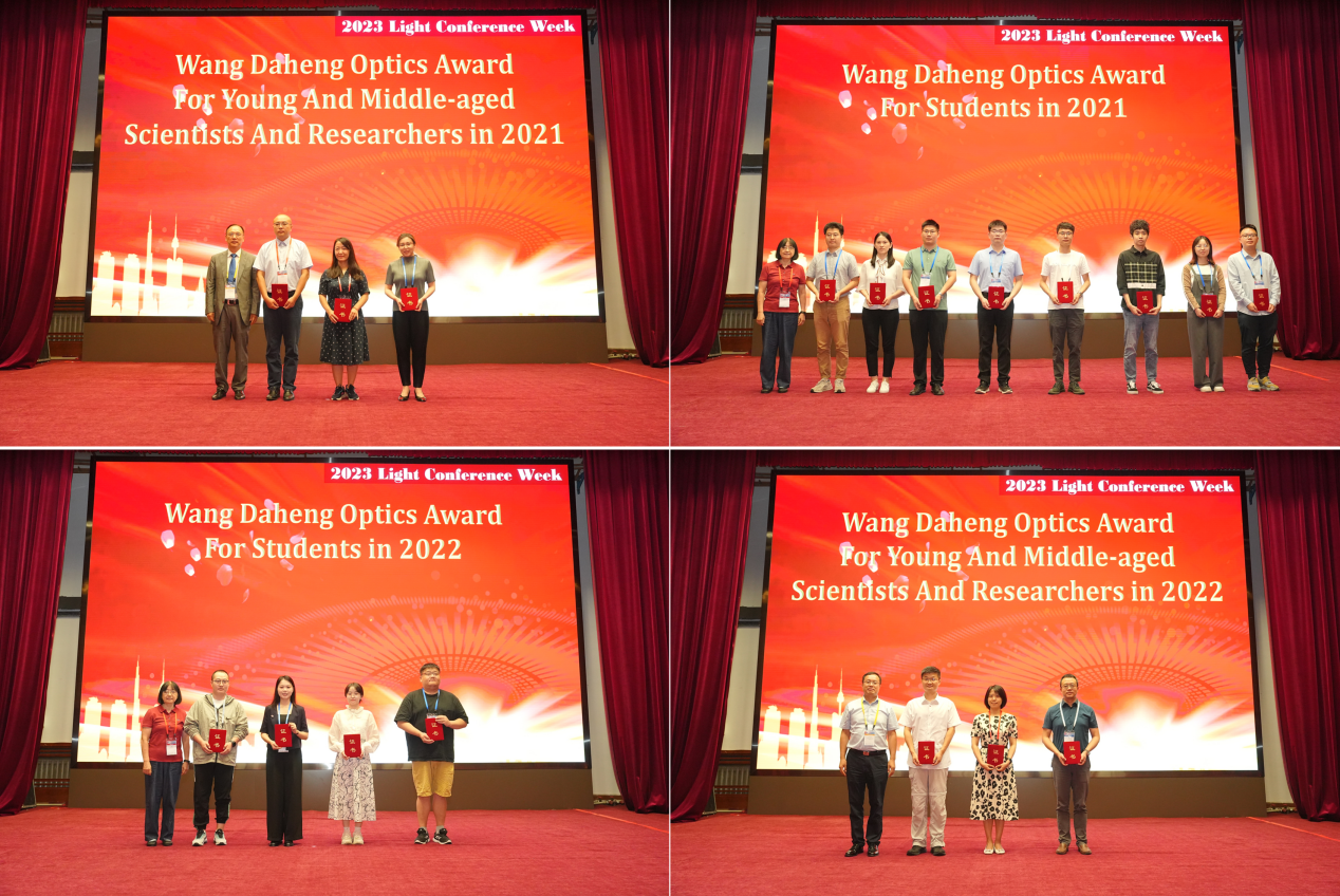 贾平所长长春光机所党委书记金宏,中国科学院国家天文台王森研究员为大珩奖获奖者颁奖