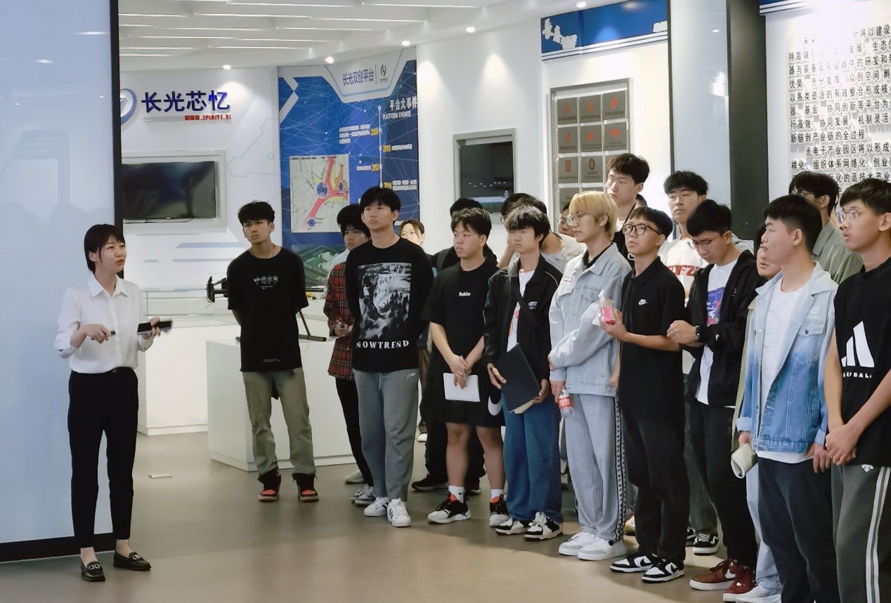 首先,学生们在园区运营总监高士红的带领下参观了企业展示中心,让同学们更直观的了解园区在航空航天信息、激光技术及应用、核心元器件、新材料与应用、智能制造与装备、半导体显示与照明、医疗与生命科学七大产业领域取得的系列科技成果。同时,通过听讲解、看展品、观看宣传片等方式学习了光电信息技术在生产生活中的应用,让同学们更深刻地领会了“光电领域的每个创新,都会给未来生活带来巨大的改变”。