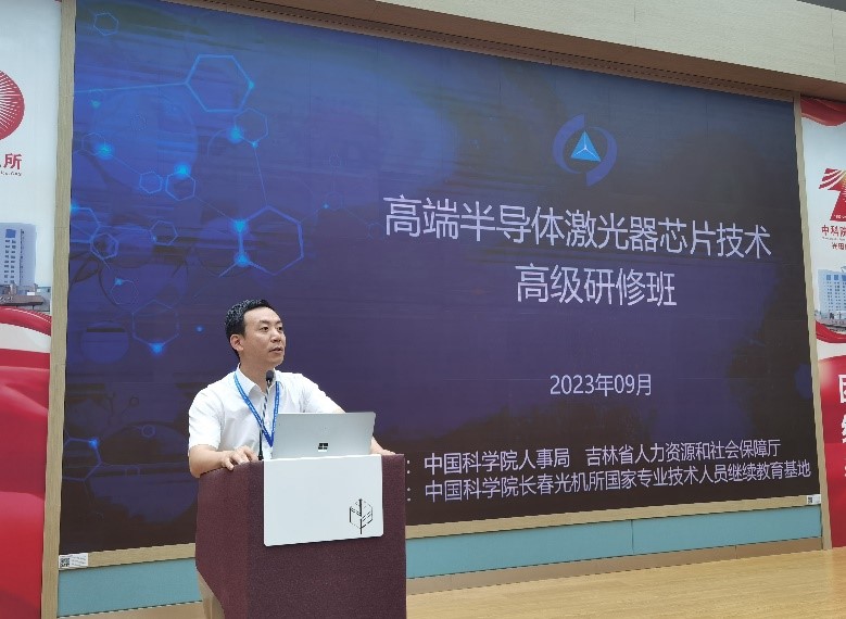 由中国科学院人事局和吉林省人力资源和社会保障厅共同主办、中国科学院长春光机所国家专业技术人员继续教育基地承办的高端半导体激光器芯片技术高级研修班于2023年9月3日-8日在吉林长春举办。来自全国12个省市企业、高校和科研院所等20家单位的73位学员参加培训。长春光机所人力资源处处长尚阳出席开班仪式。