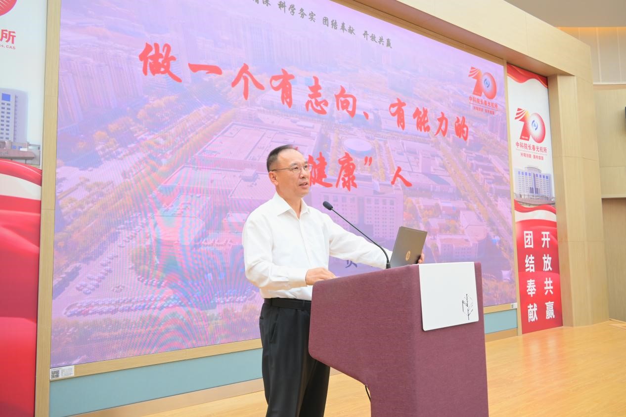贾平在开学典礼上首先对同学们表示热烈欢迎,祝贺他们从此成为光荣的长光人。贾平以《做一个有志向,有能力的“健康人”》为题,以“长春光机所是什么样的科研机构”“来到长春光机所学什么、怎么学”与“怎样做一个合格的科研工作者”三个问题为引,对新生同学做出深情勉励和殷殷期望。他指出:一要注重基础理论和基本原理的学习,做到厚基础、重实践、严要求;二要学习专业技能和工程经验;三要学深悟透长光精神。贾平希望同学们勇于创新,做一马当先的拓荒者;坚韧执着,做矢志科研的攀登者;胸怀大我,做报效祖国的奋斗者。