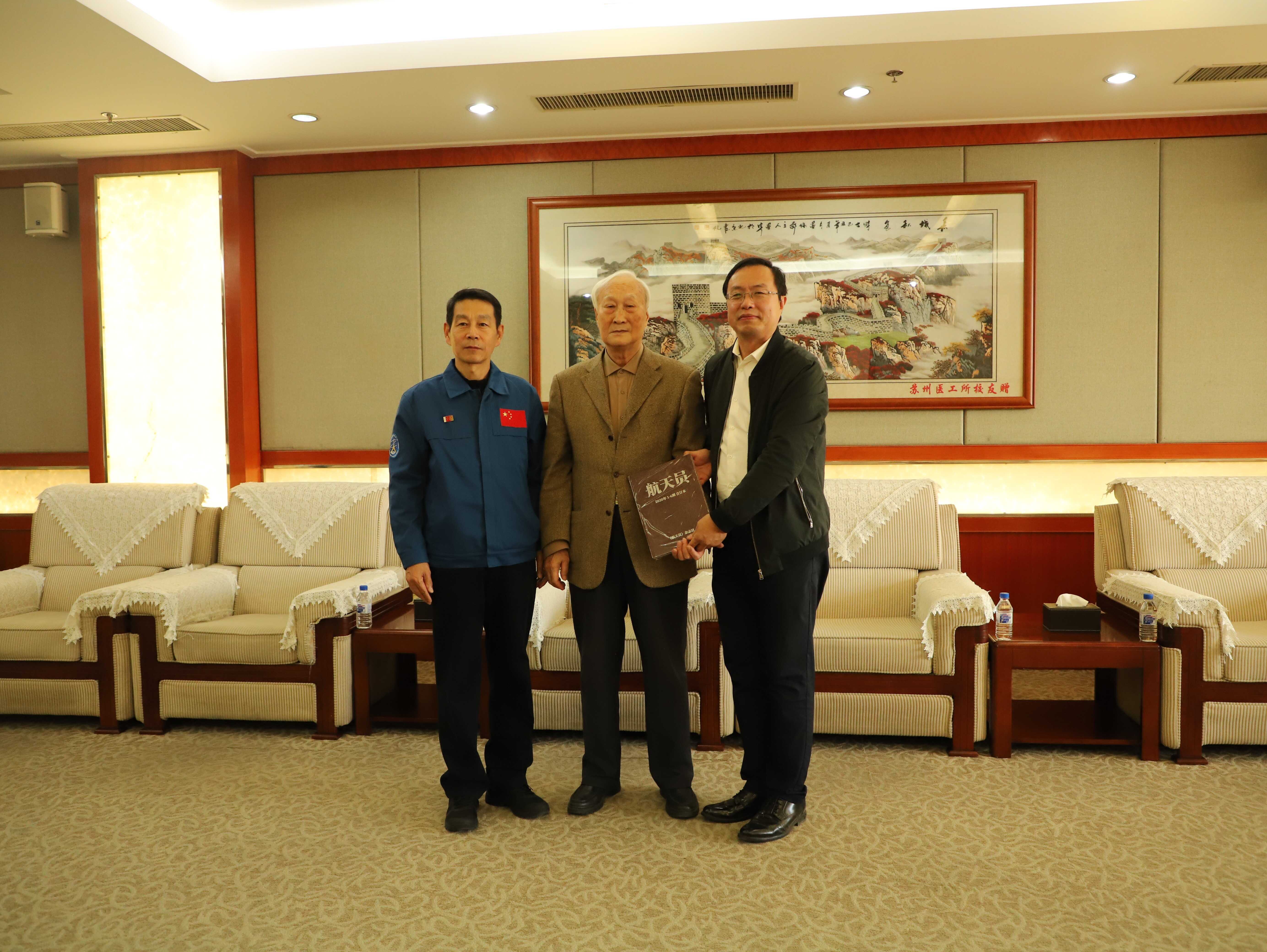 期间,赵传东航天员拜访了王家骐院士,并向长春光机所赠送《航天员》典藏版一书。
