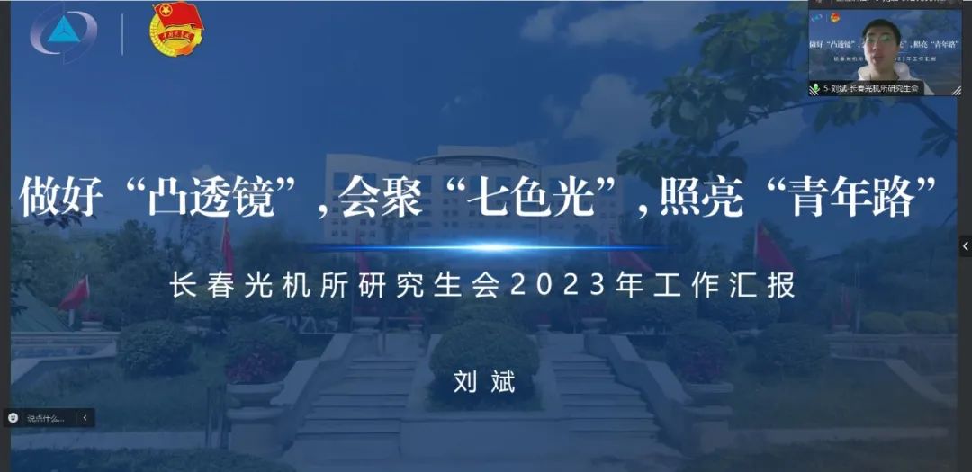 2023年度中国科学院大学学生会委员单位述职评议暨中国科学院大学“优秀学生会组织”评选会议于2023年12月28日以线上会议的形式顺利召开。我所学生会主席刘斌同学和骨干代表参加了本次会议。