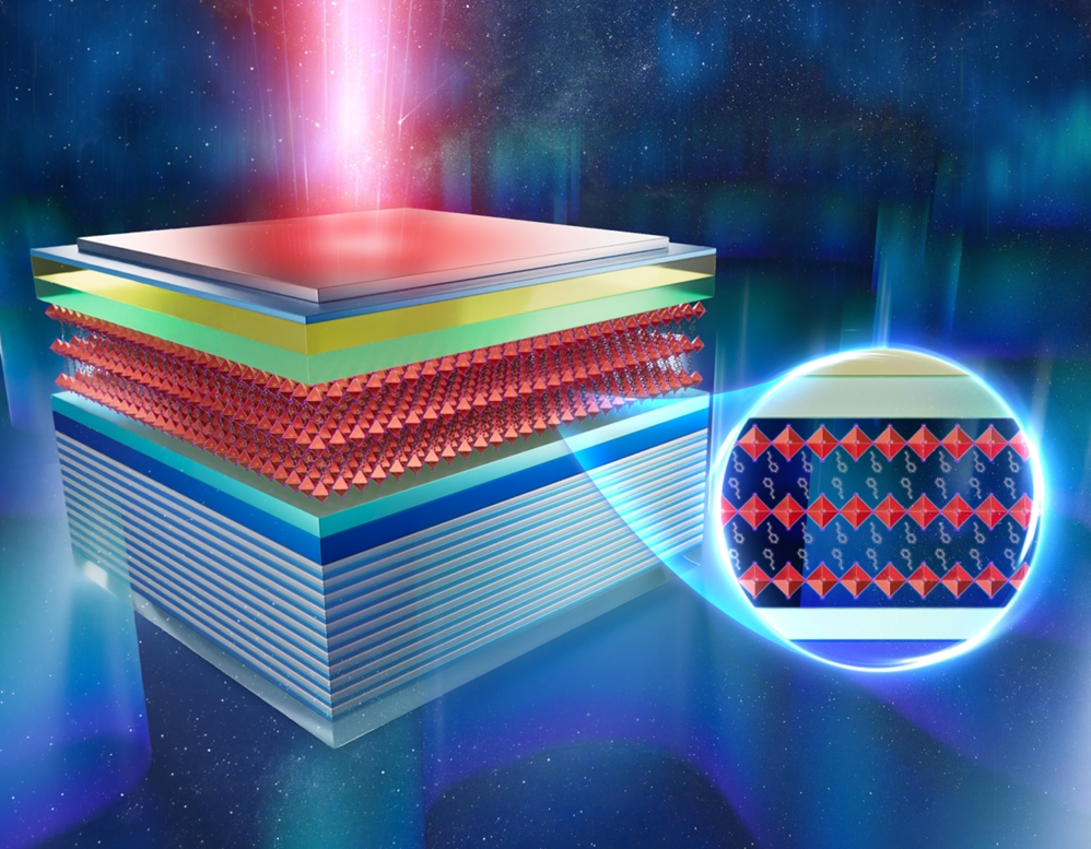 自2014年首次报道室温运行的PeLED以来,通过材料和器件结构的不断优化,PeLED性能大幅提升,其中红光PeLED在视力保护方面的潜力尤为引人注目。英国伦敦大学研究团队发现,每天只需暴露在红光下3分钟,就能显著缓解视力下降。而钙钛矿的光谱可调性及较高的色纯度都将为护眼红光PeLED的实现提供保障。目前,能够实现高效红光PeLED的策略主要包括界面工程、配体工程等方法,上述方法都是基于对材料本身性能的调控来实现的。然而,在早期对有机电致发光器件的研究中,通过器件结构的合理设计,如利用微腔结构,也可以有效的调节发光峰位以及发光强调等电致发光性能。