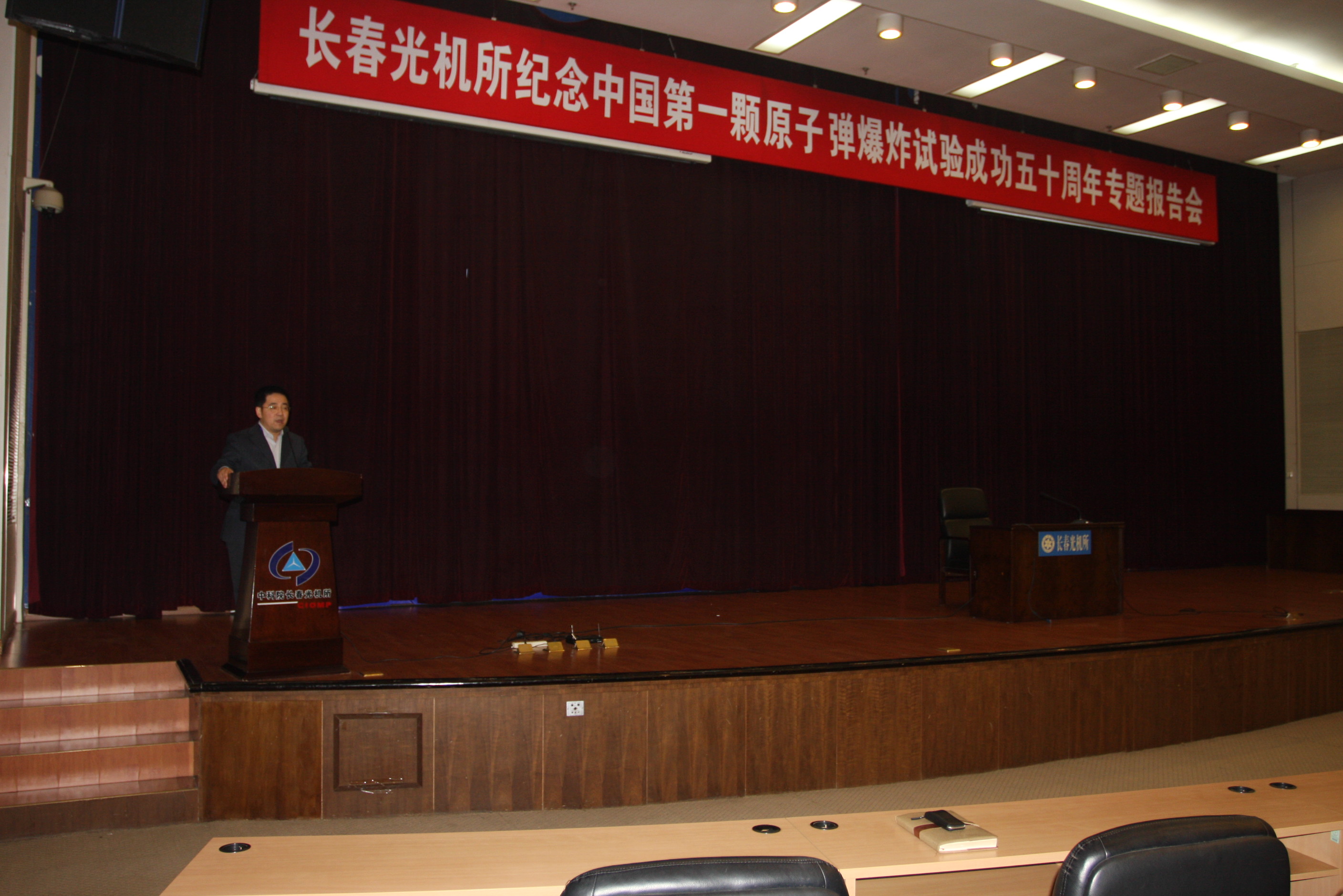 为纪念原子弹成功爆炸五十周年,增加所内职工、青年学生对原子弹研试历程、长春光机所参与原子弹试验经过的了解,大力弘扬及传承“热爱祖国、无私奉献、自力更生、艰苦奋斗、大力协同、勇于攀登”的两弹一星精神,10月16日,长春光机所举办纪念中国第一颗原子弹爆炸试验成功五十周年专题报告会,邀请了曾经参与原子弹爆炸试验任务的中国科学院陈星旦院士作报告。