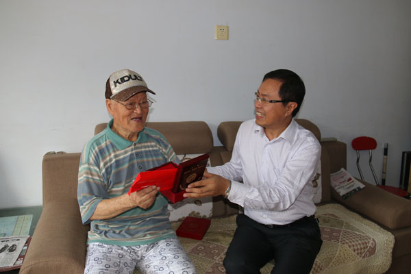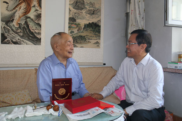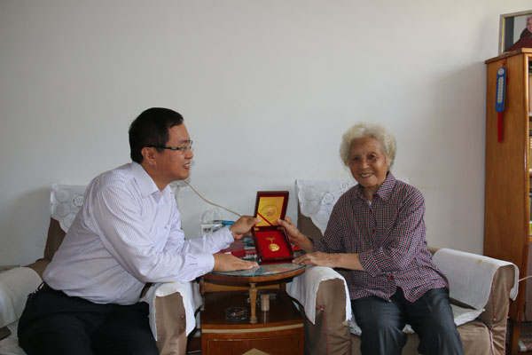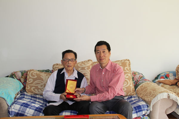 在纪念中国人民抗日战争暨世界反法西斯战争胜利70周年之际,根据中组部、中科院等通知精神,8月31日上午,长春光机所党委书记、副所长马明亚,党委副书记、纪委书记金宏分别登门看望慰问了本所在长老红军、抗日时期参加革命工作的离休老干部,向他们致以崇高敬意和诚挚问候,感谢他们为党、国家的事业及本所的建设发展做出的巨大贡献,并转交了中共中央、国务院、中央军委颁发的中国人民抗日战争胜利70周年纪念章,送达了慰问金 。