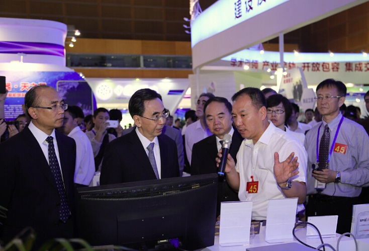 当天,中国工程院院长周济,广东省省长朱小丹,中科院秘书长邓麦村等领导来到长春光机所展区,听取了长春光机所所长贾平所做的情况介绍,并实地观看了成果演示。