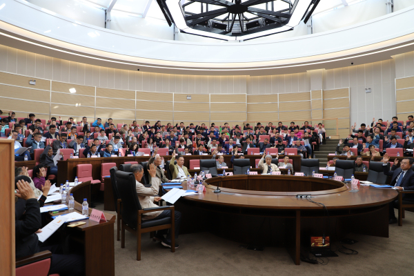 会议代表认真听会