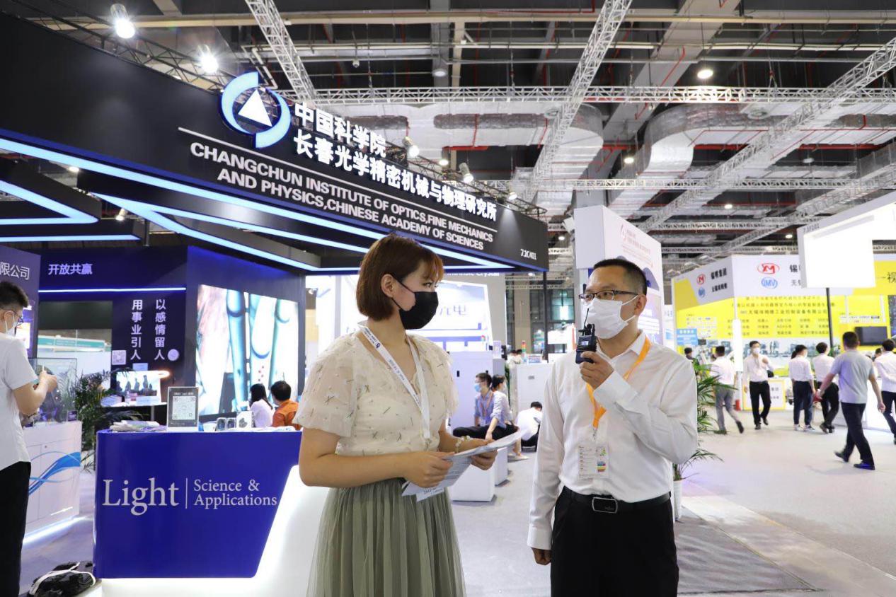 在展会期间我所还组织了产品发布、成果推介、诚聘英才、期刊宣讲等多项丰富多彩的活动,吸引众多观众驻足观摩和洽谈。长光时空公司总经理张星作为我所代表,现场接受了媒体的采访,就光电行业的发展、技术应用前景及未来市场方向进行了精辟阐述。