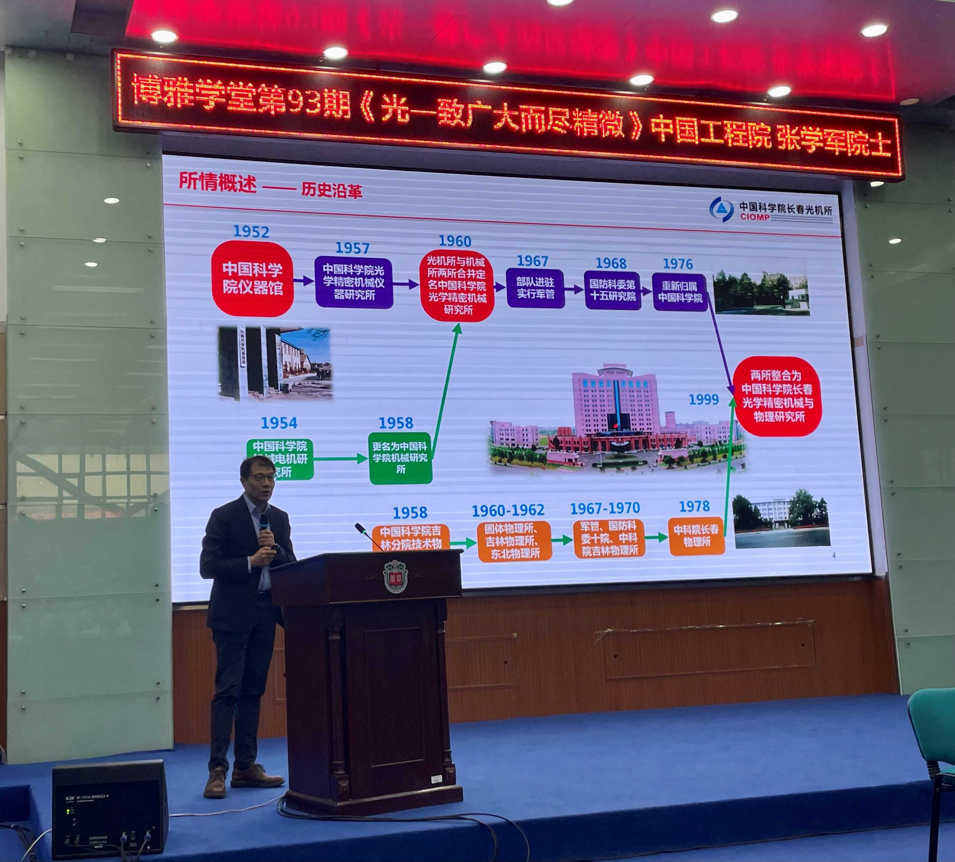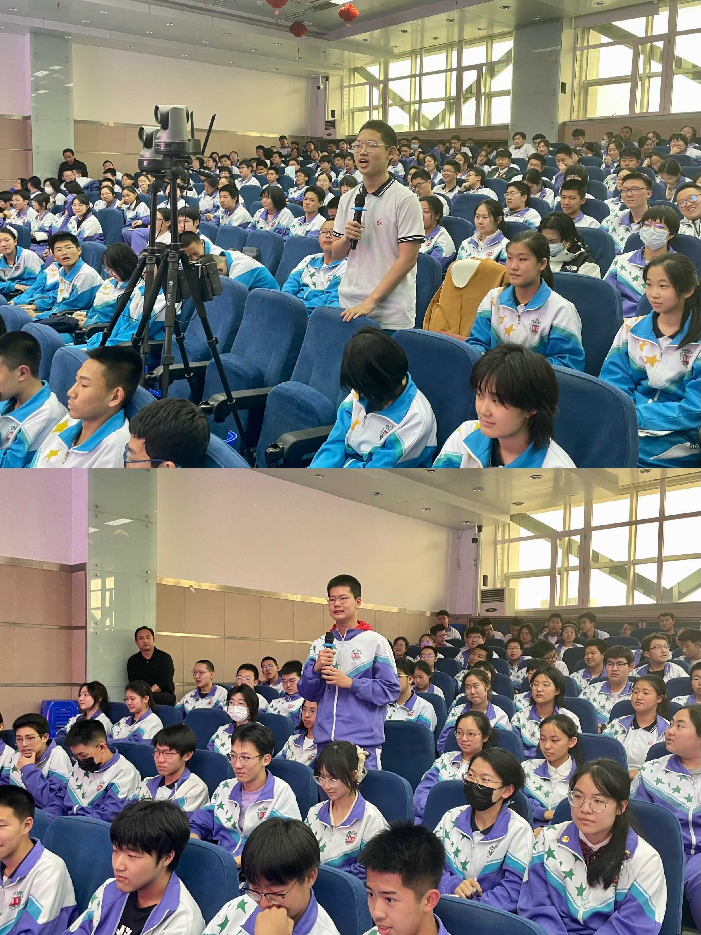 在主题报告环节,张学军以《光——致广大而尽精微》为主题,从所情介绍、光的本质、光的分类到第一台望远镜、第一台电子显微镜等光学仪器的诞生以及世界各国天文望远镜的发展现状,再到光学技术在半导体、医疗、通信等多领域的应用,深入浅出地为东北师范大学附属中学的师生们带来了一场精彩纷呈的光学盛宴;随后,张学军围绕如何解决国家关键性技术卡脖子问题与同学们进行了互动交流,现场气氛十分热烈,报告也激发了学生们对于光学领域科学研究的热情。