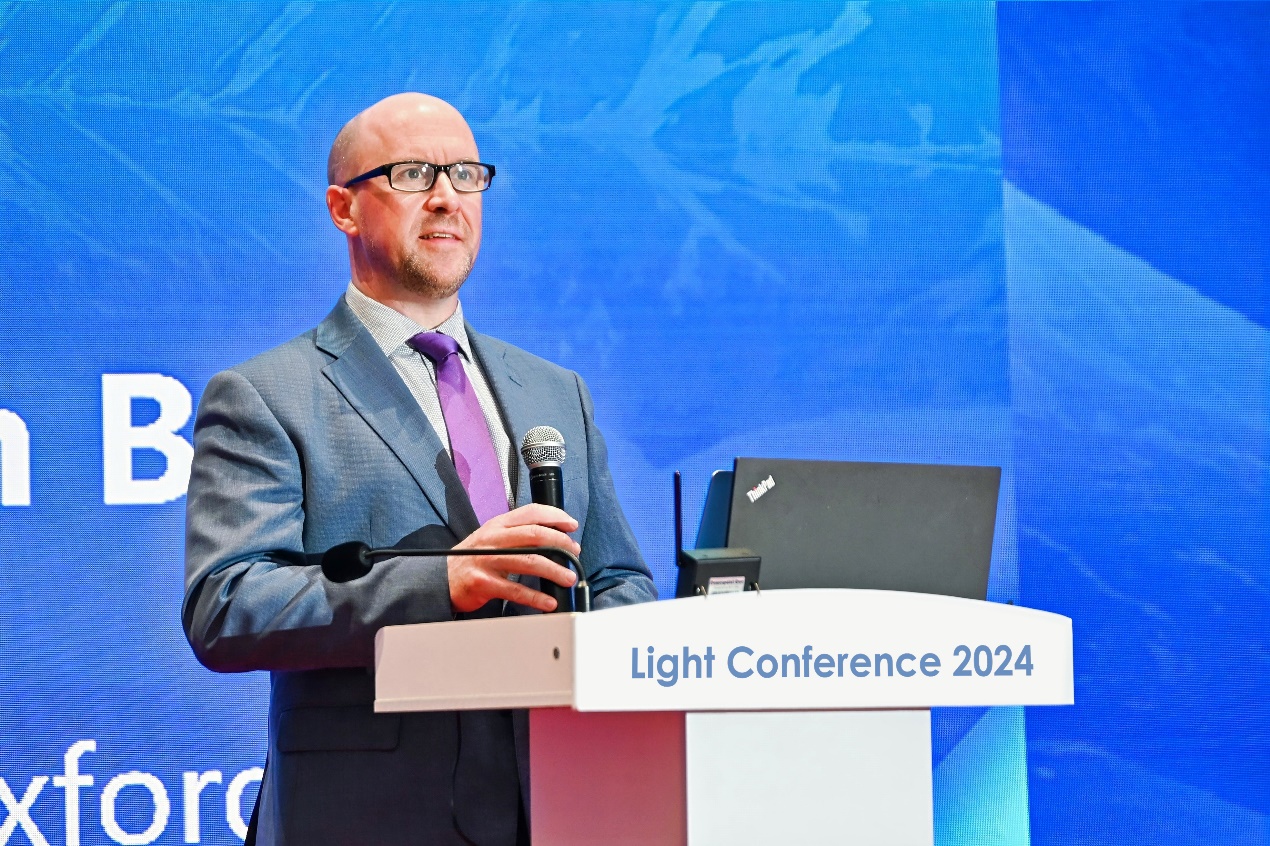 大会开幕式由剑桥大学光子器件与传感器中心主任、大会共主席初大平教授主持。英国牛津大学讲席教授、大会共主席Martin Booth代表大会组委会致欢迎辞。他首先向各位与会嘉宾致以诚挚的问候,并对长春光机所等主办单位的大力支持表示感谢。本次大会涵盖光学精密测量、生物光子学、元宇宙/虚拟现实/增强现实、先进光学器件和系统等11个主题,吸引了来自18个国家和地区的超800名参会者,汇集光学及相关领域顶尖学者,希望为所有与会者提供学术交流和思想碰撞的高质量平台。
