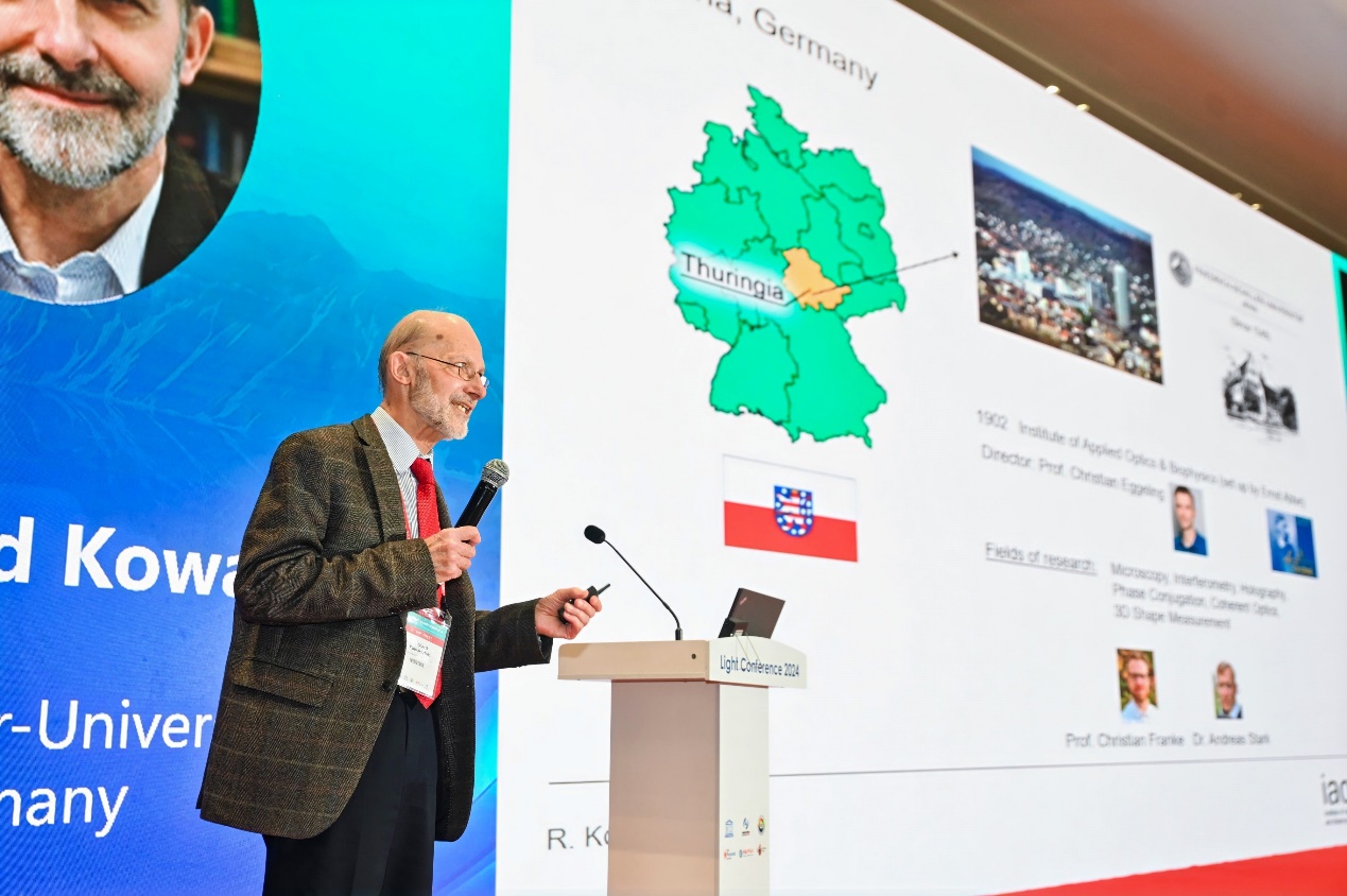 颁奖典礼后,东南大学李全院士,美国Spectra-Physics Lasers公司首席技术官Jim Kafka博士,德国耶拿大学Richard Kowarschik教授,美国洛斯·阿拉莫斯国家实验室陈侯通博士、中国科学院上海光学精密机械研究所田野研究员分别围绕光导液晶、超快激光器在多光子显微中的应用、三维形状测量技术、光电超表面的纳米级矢量光电流、高场超快激光驱动电子加速器与新型辐射光源主题做了精彩的大会报告。
