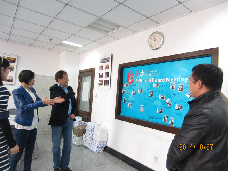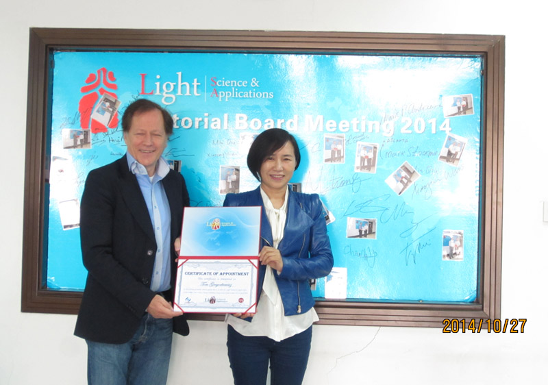 2014年10月26日-27日,荷兰阿姆斯特丹大学范德瓦尔兹-塞曼研究所科学家Tom Gregorkiewicz应邀访问《Light: Science & Applications》(以下简称Light)编辑部。