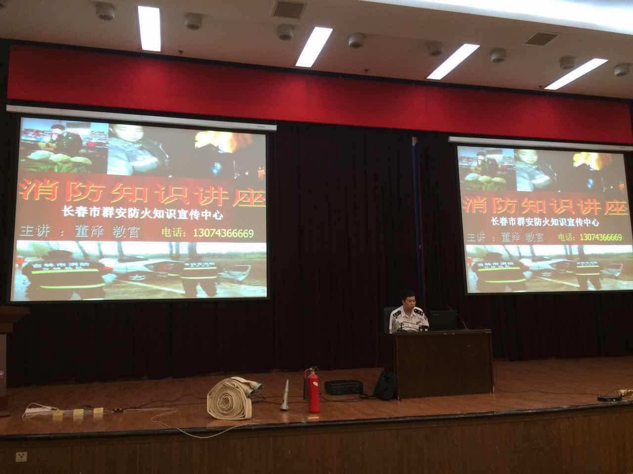 董泽教官原服役于吉林市公安消防支队,曾参与2013年德惠爆炸的救援工作,获得“优秀士兵”称号。培训会上,董泽教官结合近年来发生的火灾案例,以文字及图片形式生动地阐述了普及消防安全知识、提升消防意识的重要性,从防火、灭火、逃生、自救四个方面详细介绍了火灾的形成过程,自救逃生的方法,同时讲解了灭火器、防毒面具、逃生绳等消防自救器材的操作方法。