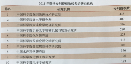 图4 2016年获得专利授权数较多的研究机构