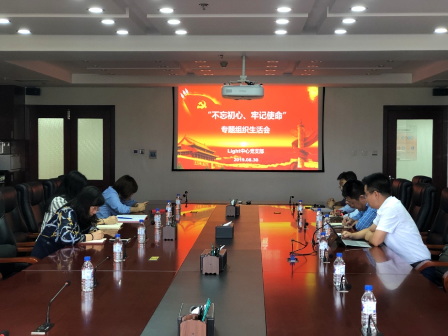 经过较为充分的组织生活会会前学习及相关准备,8月30日下午,Light中心党支部召开了“不忘初心,牢记使命”专题组织生活会。张莹主持会议,所党委委员、党办主任王晓慧以及中心支部全体党员参加了此次会议。