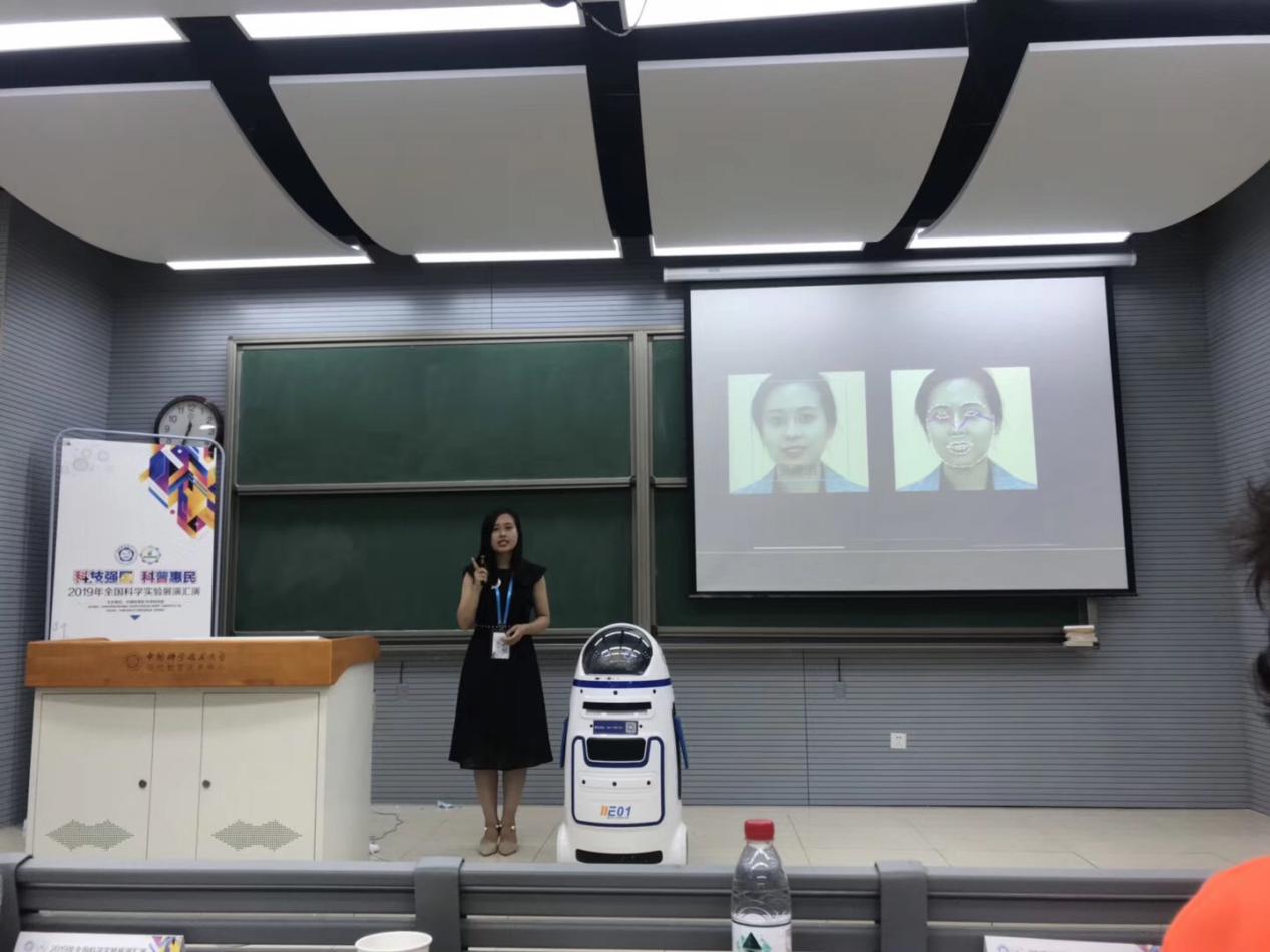 在自选实验中,长光芯忆公司以智能机器人“小胖”为亮点,还原展示了“慧眼识人”的科学奥秘。短短六分钟时间通过情景剧演绎、模拟演示、实验讲解等方式向公众普及了人脸识别的过程和深度学习的概念,获得了在场评委和观众的好评。