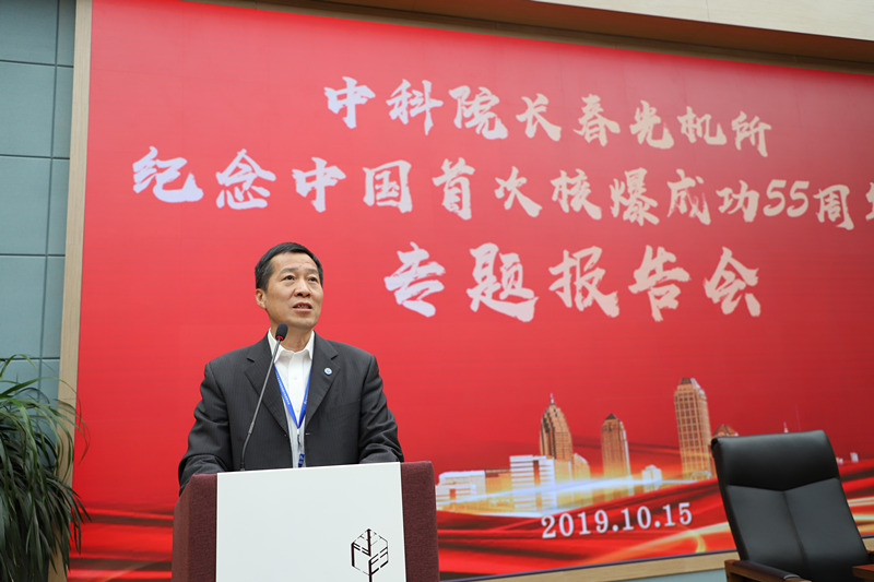 为纪念中国第一颗原子弹成功爆炸55周年,增加所内职工、青年学生对原子弹研试历程、长春光机所参与原子弹试验经过的了解,大力弘扬及传承“热爱祖国、无私奉献、自力更生、艰苦奋斗、大力协同、勇于攀登”的两弹一星精神,10月15日上午,长春光机所党委举办第27期长光大讲堂:我与第一颗原子弹试验的故事--纪念中国第一颗原子弹爆炸试验成功55周年专题报告会。报告会邀请了曾经参与原子弹爆炸试验任务的中国科学院陈星旦院士、王永义研究员和王传基教授作报告。 报告会由长春光机所党委书记、副所长马明亚主持。所内260多名青年职工及研究生聆听了报告。