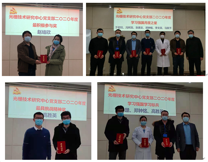 会议第二项,支部根据《光栅技术中心“党内评优评先工作暂行办法”》对一年来表现优异的同志进行了表彰,支部青年委员王玮宣读了受表彰人员名单,11人次分别获得了“最积极参与奖”、“最具挑战精神奖”、“学习强国月度之星”和“学习强国年度标兵”四项奖项。