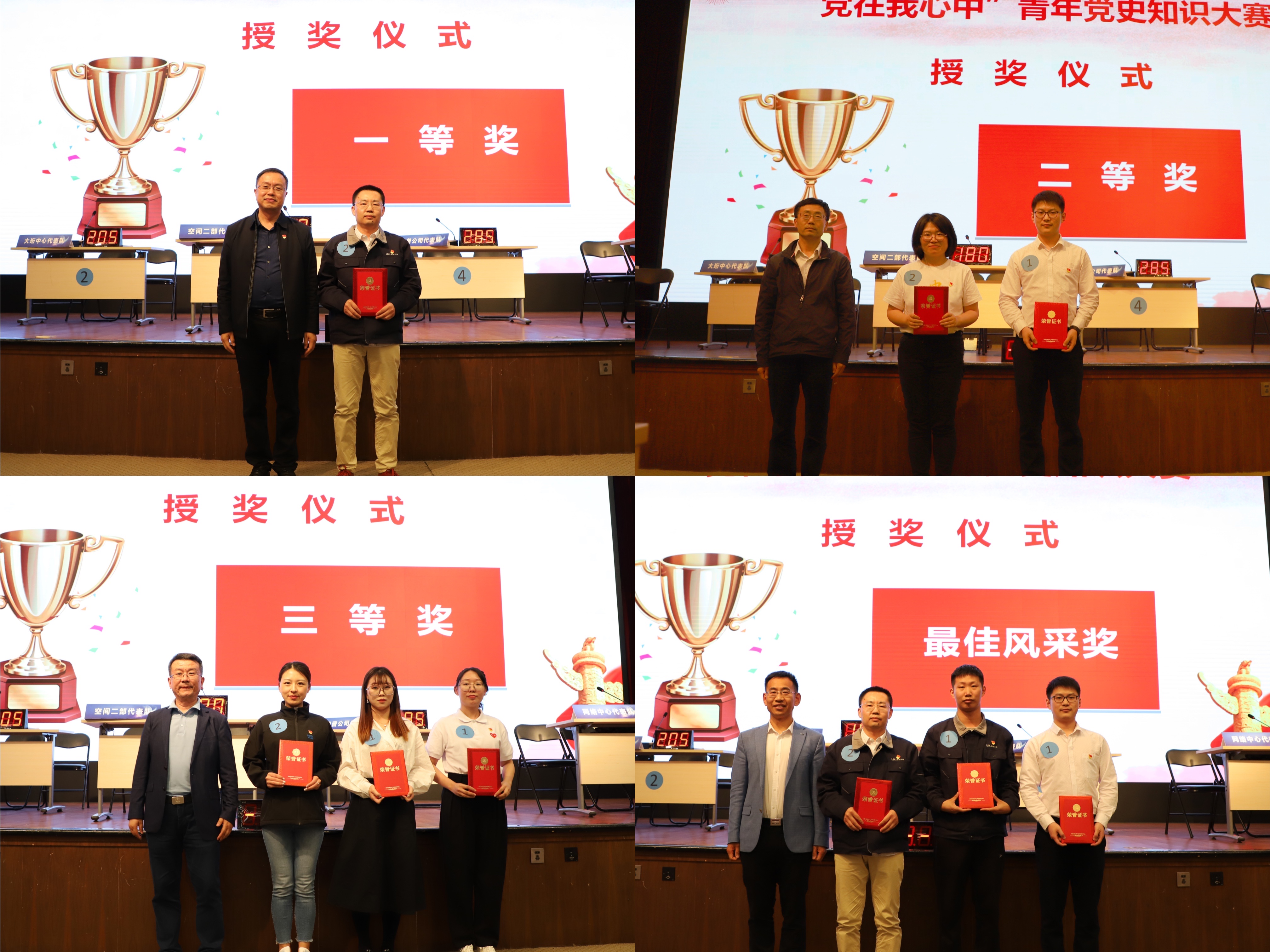 本次党史知识大赛在庄严的国歌声中拉开序幕。各队队员经过认真准备,以整齐、昂扬的精神面貌参加比赛,答题环节精彩纷呈,观众掌声不断。经过现场激烈角逐,奥普公司代表队获得大赛一等奖,大珩中心代表队和网络中心代表队获得二等奖,电装中心代表队、空间二部代表队和长光华大公司代表队获得三等奖,奥普公司代表队生吉林、刘成和网络中心代表队张鑫磊获得个人最佳风采奖。