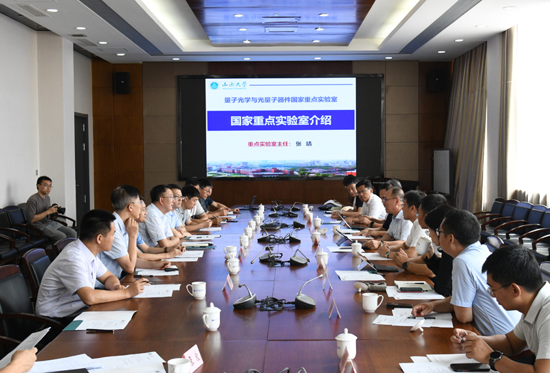接着,贾平一行来到山西大学,参观了量子光学与光量子器件国家重点实验室并座谈交流。山西大学党委副书记、副校长张天才,党委常委、副校长马杰参加座谈,重点围绕量子光学与光量子器件方面的科学研究开展深入研讨。双方表示将强强联合、优势互补,共同促进新发展时期下的光学学科发展。