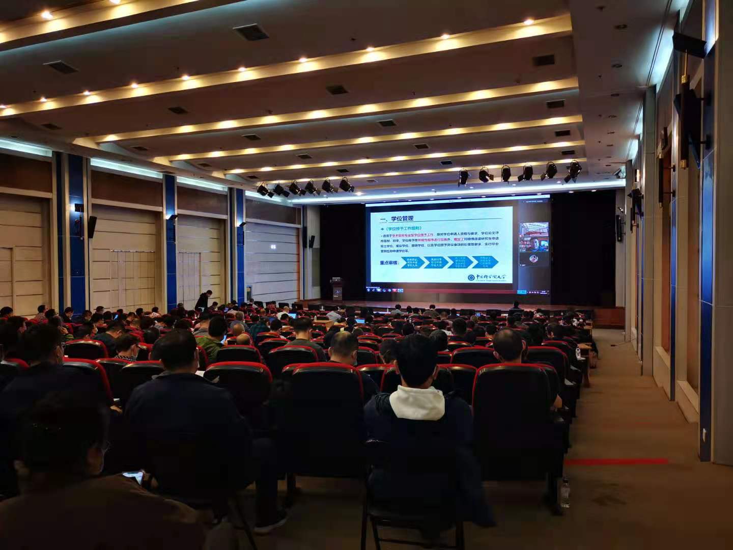 王多君以《学位论文质量提升建言》为题,回顾了国科大研究生培养历史沿革,详细的介绍了国科大学位授予体制机制,并着重强调研究生导师应强化底线意识和质量意识,严格执行研究生培养全过程质量控制,促进研究生教育质量的提高。
