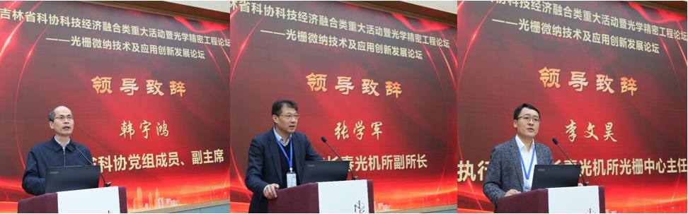 吉林省科协党组成员、副主席韩宇鸿,长春光机所副所长张学军,论坛执行主席、长春光机所光栅中心主任李文昊分别致辞