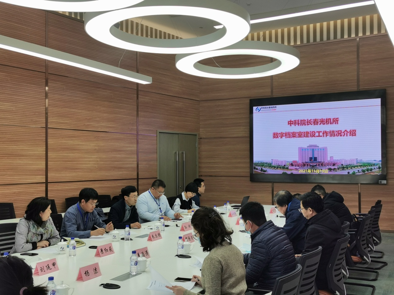 2021年11月19日,省委办公厅二级巡视员关长生及地区、经济科技、省直档案监督指导处的有关同志到长春光机所调研数字档案室建设工作。长春光机所党委副书记、纪委书记孙焕陪同调研。