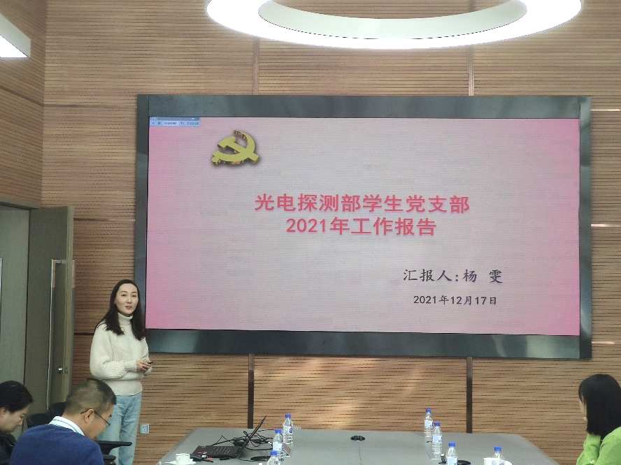 书记上台展风采,创新活动竞巧思。12月17日上午,长春光机所研究生部党总支举办了2021年度研究生部优秀党支部书记评比会,来自12个不同支部的书记逐一做了本年度的工作汇报,由研究生部主任方秀军、副主任李树军、王檬檬及12位支部书记组成评审团,从支部建设、开展活动、工作亮点等多个维度对支部书记进行评分。