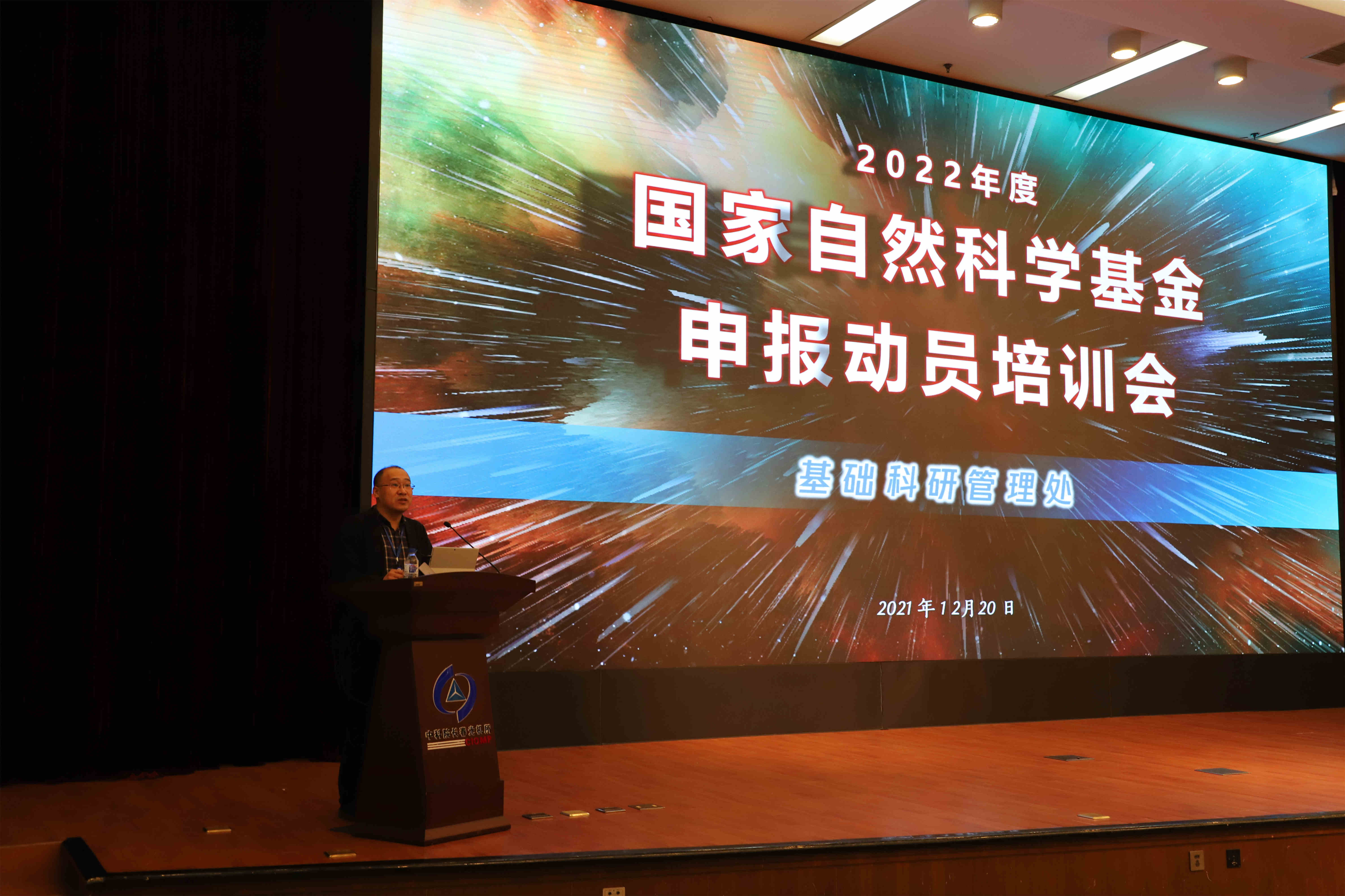 为做好2022年度国家自然科学基金(以下简称“自然基金”)项目申报工作,基础科研处于12月20日下午,在研发大厦东侧报告厅召开了2022年度国家自然科学基金项目申报动员培训会,所务委员黎大兵出席会议并讲话。会议由基础科研处副处长景岩主持。
