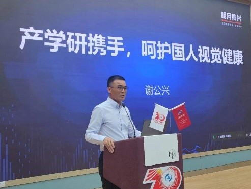 在与会嘉宾的见证下,长春光机所与明月镜片合作项目顺利启动,推动镜片设计及光学检测国产自主化。随后,谢公兴作了题为《产学研携手,呵护国人视觉健康》的报告,徐良德作了《眼视光产品的需求与研发趋势》的报告,长春光机所张舸研究员作了《碳化硅复杂曲面反射镜先进制造技术》的报告,分别从镜片产业需求、眼健康赛道机会、长春光机所先进光学技术现状及眼健康产业结合应用等方面进行了介绍。