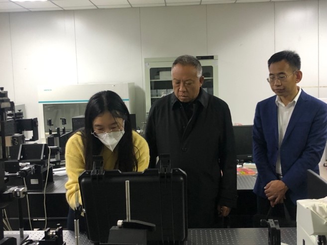 麦朝一行先后参观了学术交流中心所情展厅、应用光学国家重点实验室和精准农林创新研究室,并对荧光种子分选、种子活力无损检测、光谱农残检测、LIBS土壤污染物检测等成果进行了详细了解。座谈会上麦朝对光学技术在数字农业、智慧农业、农产品溯源等方面应用提出了新的要求,并在希望推动“光+农业”成果尽快在吉林大地开展示范应用和推广,推动吉林省科技农业快速、高质量发展,保证国家粮食安全。