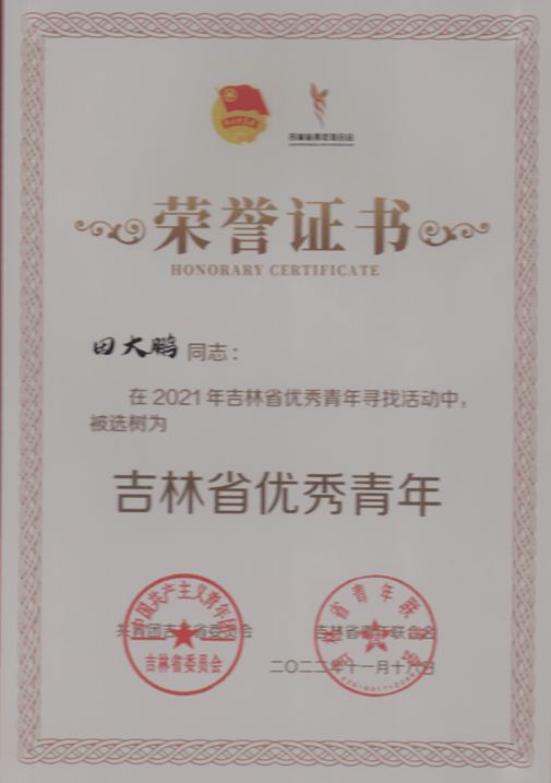 近日,共青团吉林省委和吉林省青年联合会发布了《关于公布“吉林省优秀青年”寻找活动结果的通知》(吉团联字〔2022〕23号),长春光机所田大鹏被选树为“吉林省优秀青年”。