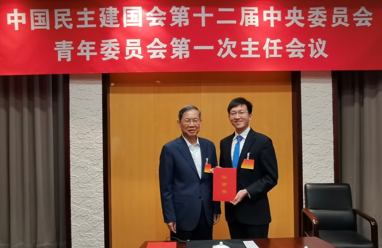 中科院长春光机所微纳光子学与材料国际实验室主任李炜当选中国民主建国会第十二届中央委员会青年委员会副主任,全国人大副委员长、民建中央主席郝明金为李炜颁发证书。