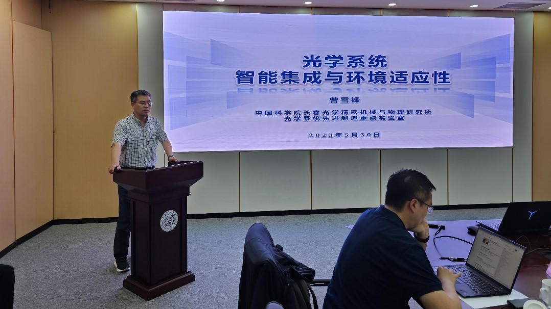 接着,光学室智能集成与环境研究室副主任曾雪锋向参加活动的人员介绍实验室在光学系统集成与环境适应性方面的工作进展和未来规划。细致讲解了光学系统是如何通过高技术手段从单个器件最终集成成为功能强大的光学系统,光学系统在其服役、使用过程中面对不同的外界环境,需要提前做出那些预先估计判断以及在适应性控制方面做出的重要措施。