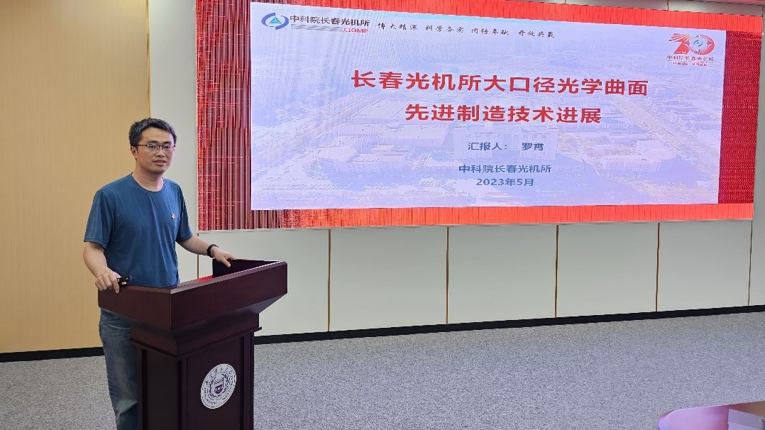 随后,光学室极端制造研究室主任罗霄介绍了实验室在大口径光学曲面先进制造方面的技术进展。报告结合实验室二十几年来在大口径光学曲面制造方面的具体工程实践,深入浅出详细介绍了一块块高素质大口光学反射镜是如何在原本受国外技术、设备封锁的背景下,通过在材料制备、加工制造、改性镀膜等关键技术的自主攻关和突破来实现的。