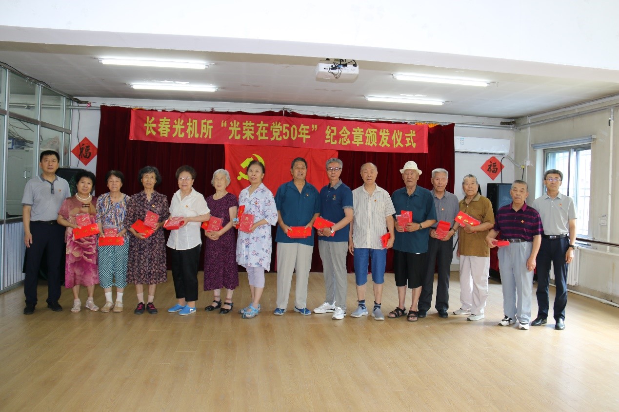 近日,长春光机所党委在离退中心举行2023年度“光荣在党50年”纪念章颁发仪式。荣获“光荣在党50年”纪念章的老党员或家属20余人参加了仪式。