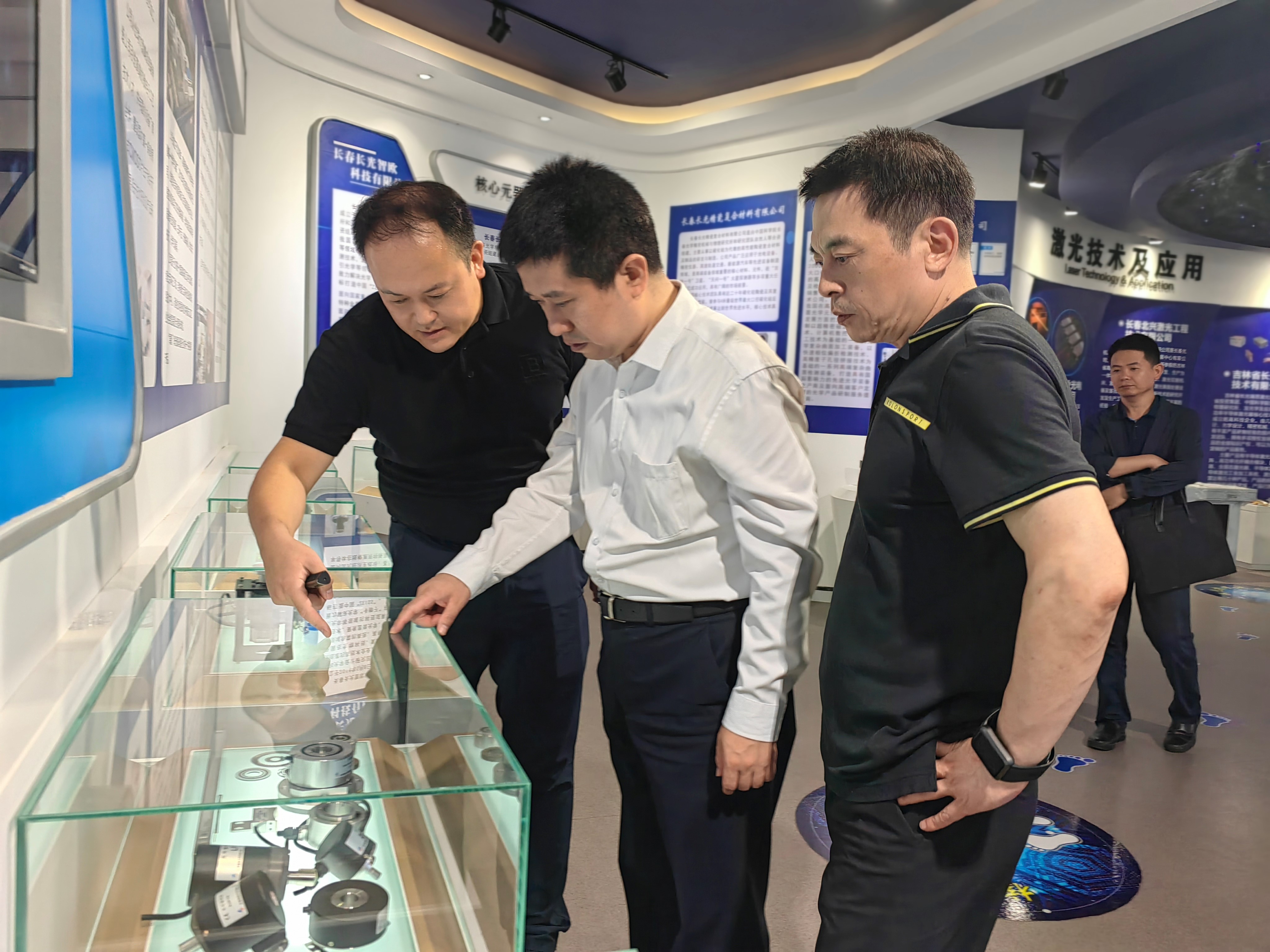 光电子孵化器总经理赵嵩热情接待并作汇报交流。赵建青一行首先参观了光电子孵化器二楼展示中心,听取了赵嵩关于光电子孵化器在园区发展建设、服务平台搭建、产业链条打造、创新企业集聚,以及在培育高质量、高技术、高能效企业,打造东北光电子和智能制造产业集群等方面进行的实践以及取得的成绩。并在企业展区详细了解光电子孵化器重点围绕核心元器件与材料、激光技术及应用、航空航天、高端智能装备等七大产业领域打造产业集群情况。