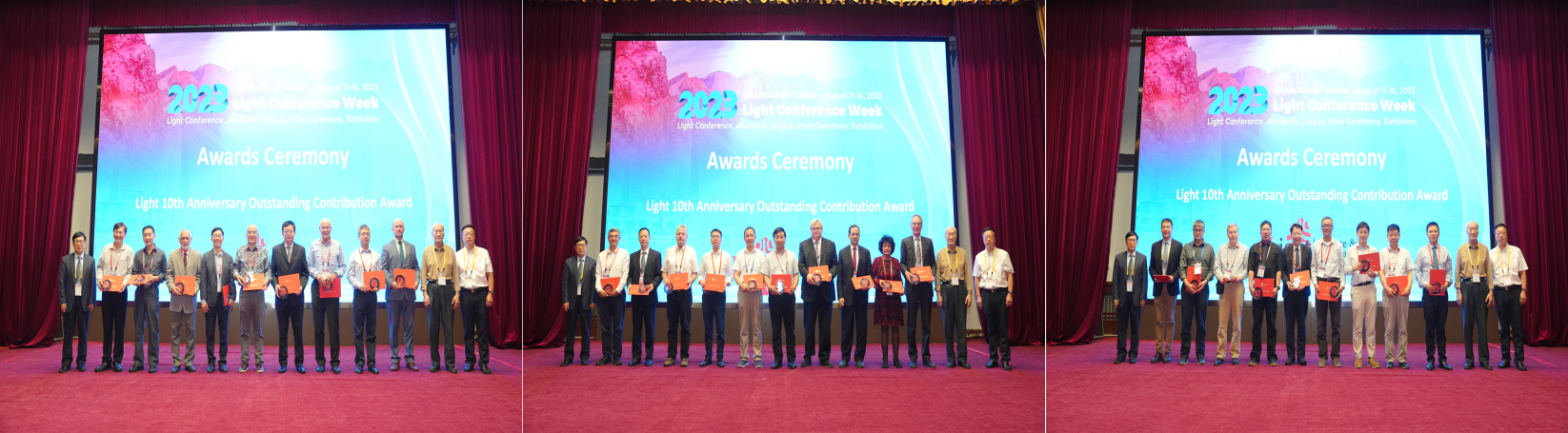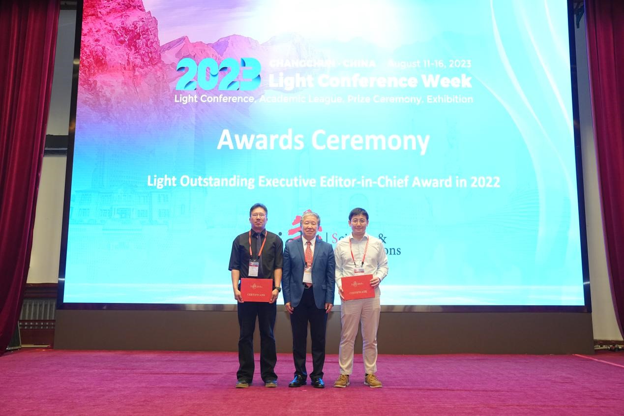 长春光机所王家骐院士、王立军院士、东北师范大学刘益春院士为Light卓越贡献获奖者颁奖