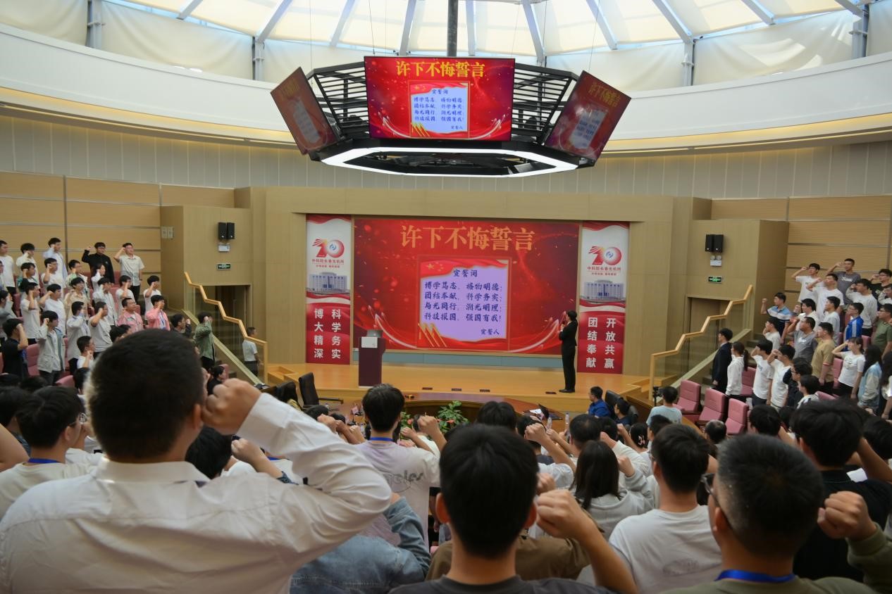 面对“国有疑难可问谁”的强国之问,同学们发出来“强国一代有我在”的青年之声,这声音坚定有力,发聋振聩,在会场上久久回荡。典礼在热烈的氛围中到达尾声,长春光机所2023级新生将在与时代同进步、与长光共发展中踏浪逐梦,扬帆起航。