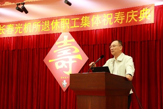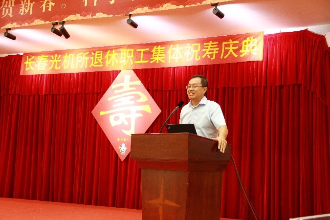 贾平在祝寿会上讲话。他首先感谢老同志们多年为国家的光学事业、为长春光机所的发展所做出的重要贡献。他表示,经过疫情之后恢复举办集体祝寿活动,旨在为老同志们提供交流沟通的平台。他诚挚地祝福老同志们生日快乐、健康长寿、晚年幸福。随后,他通报了本所近期开展主题教育、弘扬科学家精神、科普、统战、监审、离退休等党的建设工作情况;人才引进与培养、基础性研究、条件保障、质量管理、体系整合与信息化建设、成果转化及产业化、国际交流与合作等工作进展;以及任期主要工作成绩。