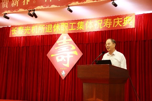 离退委主任、寿星老同志代表续志军发表了热情洋溢的讲话。他表示参加今天盛大的生日庆典,心情非常激动。他代表所离退休委员会和全体离退休老同志,感谢长春分院、长春光机所的各级领导和部门,对本所离退休工作的关心、关注和对老同志的尊重、关怀,表示作为长光人感到骄傲和自豪,希望长春光机所未来兴旺发达,离退休老同志老有所养、老有所乐。