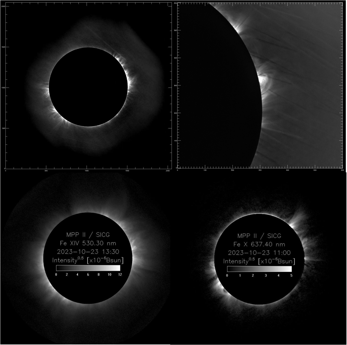 2023年10月25日,由中国科学院长春光学精密机械与物理研究所张红鑫研究员团队参与研制的、国家重大科技基础设施“空间环境地基综合监测网”(子午工程二期)光谱成像日冕仪(简称SICG),在丽江玉龙站顺利通过了由相关部门组织的工艺测试,成功获得首批日冕观测图像,标志着我国自主研制的首台常态化运行地基日冕仪正式建成。