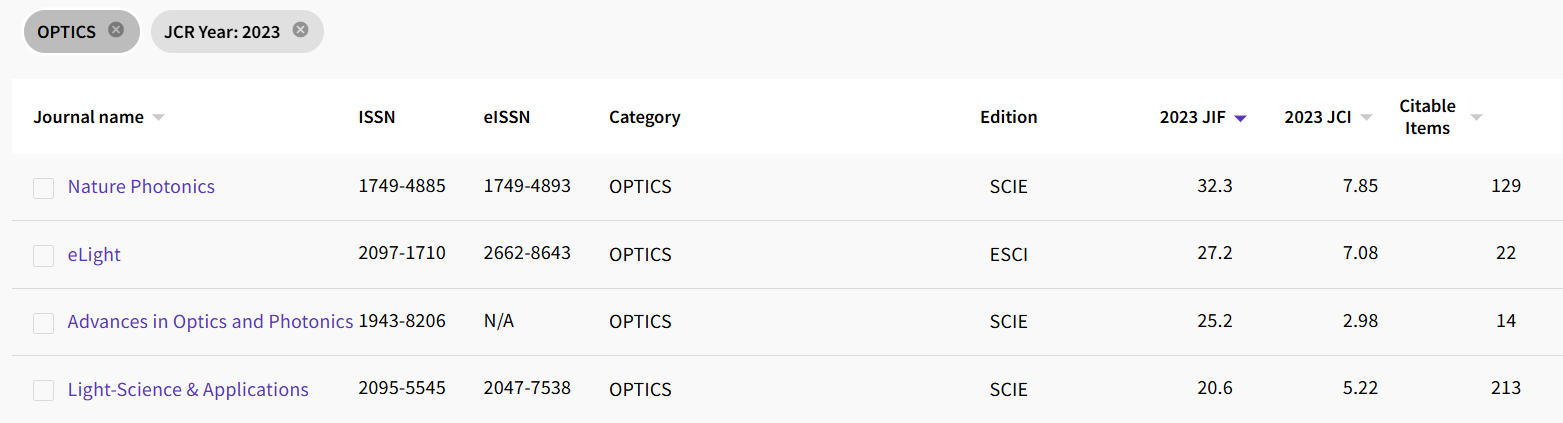 6月23日,科睿唯安发布影响因子报告(2023JCR),Light: Science & Applications姐妹刊、卓越计划高起点新刊eLight(《光:快讯》)获得首个影响因子:27.2,卓越计划领军期刊Light: Science & Applications在保持发文体量的同时,影响因子略有提升:20.6,顶刊引领子刊,打造Light系列高影响力期刊集群,Light系列完美实现自我超越。