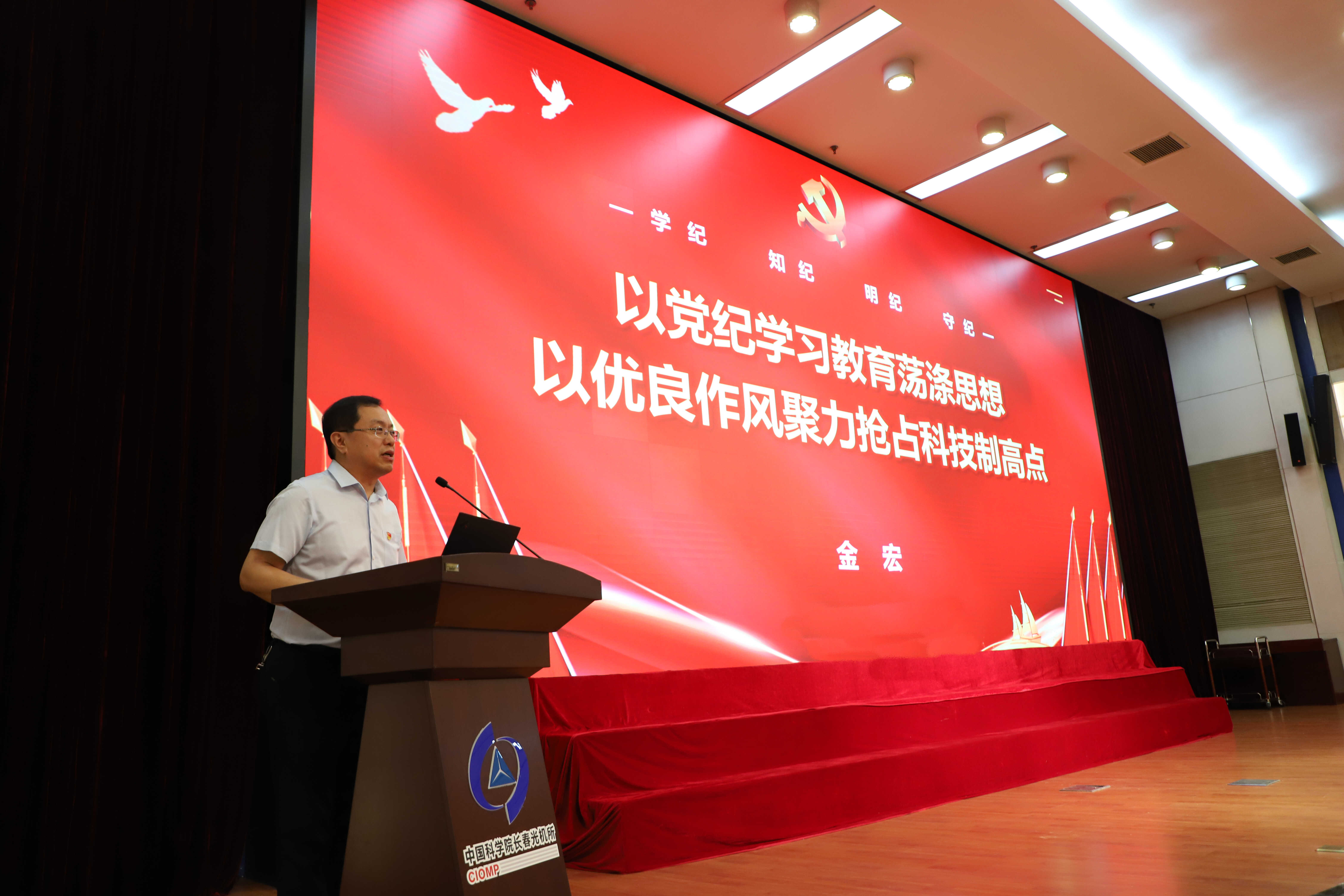 最后,金宏主讲《以党纪学习教育荡涤思想,以优良作风聚力抢占科技制高点》党课。金宏从深刻把握党纪学习教育的内涵和意义、纪律严明是党的光荣传统和独特优势、以优良作风聚力抢占科技制高点任务三个方面展开,深入宣贯了党中央关于党纪学习教育的部署要求和习近平总书记的重要讲话精神,回顾了我党纪律建设的历史进程以及建院以来老一辈科学家遵规守纪、淡泊名利的生动故事,对长春光机所深入贯彻落实党中央重要决策部署和院党组工作安排提出了具体要求,为谋划部署下一步工作指明了方向。