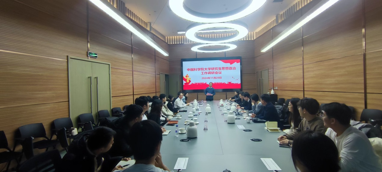 11月28日,中国科学院大学党委常委、副校长金德鹏一行到长春光机所调研研究生教育工作,校学生处处长王岗、校团委书记陈睿、校学生工作部副部长王洁婷、校毕业生就业指导中心主任常宏武等陪同调研。长春光机所副所长王建立、研究生部主任褚明辉、副主任李树军、招生培养专员王静轩、学生主管王檬檬、教学主管唐奇等教育管理人员参加此次会议,会议由褚明辉主持。