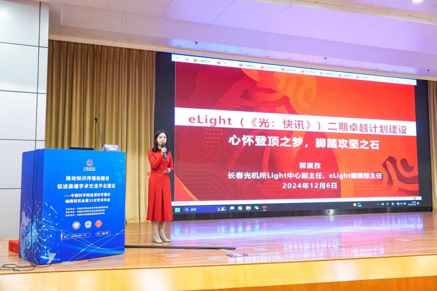 2024年12月4日至7日,中国科学院长春光机所Light学术出版中心主任张莹、副主任郭宸孜、副主任丁帅赴福州出席中国科学院自然科学期刊编辑研究会第33次学术年会。大会期间举行了隆重的颁奖典礼,郭宸孜应邀担任快闪报告环节嘉宾,以《eLight二期卓越计划建设——心怀登顶之梦 脚踏攻坚之石》为题发表精彩演讲,展现了Light中心在一流期刊建设方面的愿景与担当。